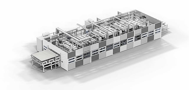 Robert Bürkle, the only European laminator manufacturer, responded to the TaiyangNews Market Survey on Solar Module Production Equipment 2026 by sharing the specifications of its 2021 model, Ypsator 2527-X VFF. The tool tops the list of products in the laminators segment of this survey, with a throughput of 150 modules per hour. The Ypsator VFF model consists of 3 chambers: pre-heating + membrane pre-press, heated metal flat press, and cold metal flat press. The membrane used in chamber 1 is silicone-free and was developed by Bürkle together with its supplier. The benefit of this membrane, according to the company, is its lifetime of over 20,000 cycles, the highest among the listed products in the survey.