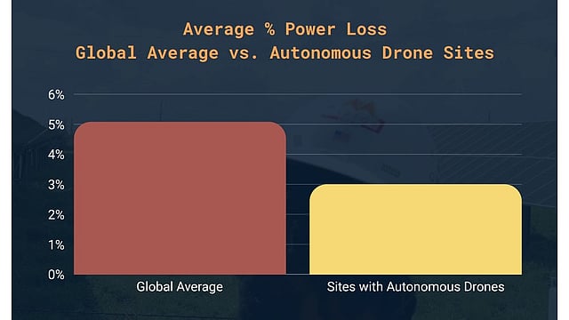 Solar assets using docked autonomous drones recorded an average power loss of around 3%, significantly lower than the dataset-wide average of 5.08%