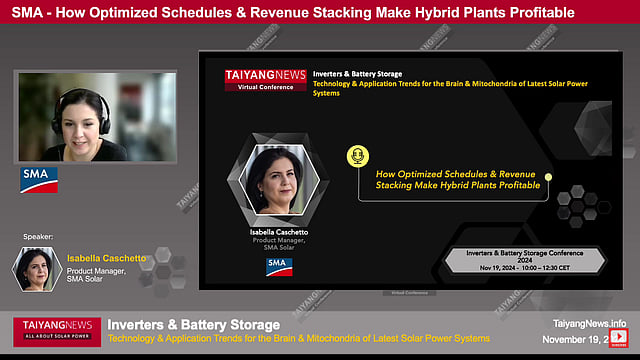 Isabella Caschetto, product manager at SMA Solar, provided insights into the latest smart software offered by CAMOPO Energy – a sister company of SMA Solar – at the recent TaiyangNews Inverters & Battery Storage 2024 virtual conference. The software features real-time optimized scheduling and revenue stacking functionality.
