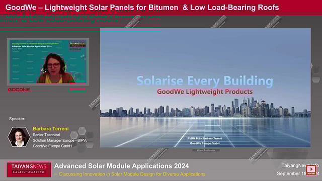 At the TaiyangNews Advanced Solar Module Applications 2024 Conference, Barbara Terreni, Senior Technical Sales Manager – BIPV at GOODWE Europe GmbH, provided a brief overview of the company’s various BIPV solutions, particularly for low-load-bearing roofs (see GoodWe presentation here). GoodWe, a prominent Chinese company with over 5,000 employees, has established a strong presence in PV inverters, storage, and charging solutions. In the past 4 years, the company has expanded into photovoltaic building solutions.