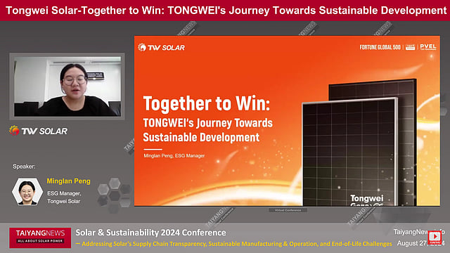 Tongwei Solar, a vertically integrated photovoltaic (PV) company with a presence in polysilicon, ingot, wafer, solar cell, and PV modules, has been releasing an annual ESG report since 2020. These reports align with several international ESG disclosure standards, such as the Global Reporting Initiative (GRI), the Task Force on Climate-related Financial Disclosures (TCFD), and the UN Sustainable Development Goals (UN SDGs). Specifically, the company has committed to 15 of the 17 internationally recognized UN SDGs. At the TaiyangNews Solar & Sustainability 2024 Conference, Minglan Peng, ESG manager at Tongwei Solar, presented the company’s comprehensive approach to ESG compliance and its latest achievements (see Tongwei Solar's presentation here).