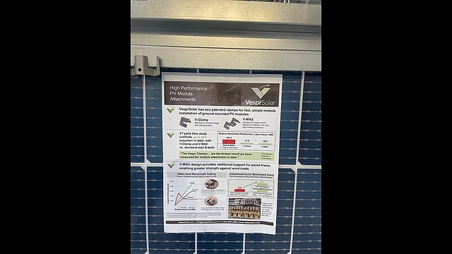 VesprSolar displayed its V-Clamp and V-MAX series PV module mounting clamps, suitable for fixed-tilt and 1P tracker-based installations, respectively, during the show