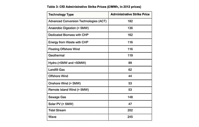 Strike price for solar PV is capped at £0.047/kWh, just ahead of £0.044/kWh for offshore wind which is the lowest administrative strike price for all participating technologies in this round.