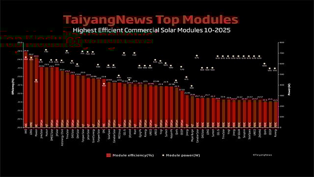 The latest edition of TaiyangNews’ TOP SOLAR MODULES, compiled in early October 2025, features 49 high-efficiency products, 2 fewer than in the previous month, while the number of companies remains unchanged at 34.