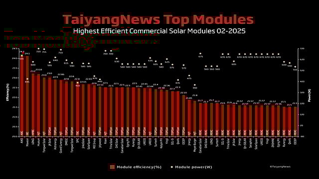 The TaiyangNews February edition of TOP SOLAR MODULES remains unaltered. The number of products featured in January 2025 remains the same. This 38th edition of the TOP SOLAR MODULES listing features 50 products from 32 companies.
