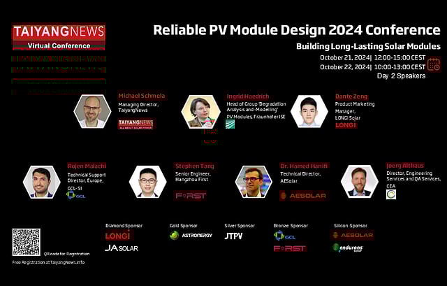 Reliability has never been higher on the agenda for the global solar PV industry as it is now especially as prices hit a historical low. While solar module reliability is a critical tool that ensures its long and healthy life, it may not attract full attention as newer technologies constantly make news while profitability take centerstage as industry players face challenges ranging from stiff competition to trade issues. TaiyangNews Reliable Solar PV Module Design 2024 Conference, set to start at 12.00 PM CEST TODAY, attempts to explore the subject in depth. Register for the conference now, for free, here.