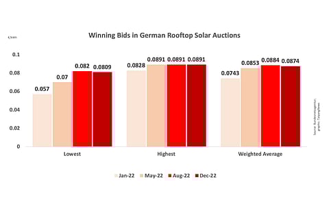 Germany had another round of undersubscribed rooftop solar auction as Bundesnetzagentur says bids came in for only 128 MW against 202 MW on offer for solar systems on buildings and noise barriers, and only 1 bid for innovative tenders which was a solar and storage project.