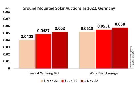 The agency listed same reasons for undersubscription of the previous round in June 2022 when 714 MW bids came in for 1.126 GW tender and eventually 696 MW was awarded (see Germany's 1.125 GW PV Auction Undersubscribed).