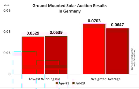 The July 1, 2023 auction round for ground mounted solar PV systems in Germany saw record participation with Bundesnetzagentur or the Federal Network Agency receiving 516 bids with a combined 4.653 GW capacity as against 1.611 GW offered.