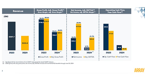 Array’s Q2 2024 revenues declined 50% annually due to lower volumes and ASP decline on lower input costs