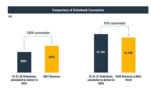 Array counts its total executed contracts and awarded orders as on December 31, 2021 as worth $1.8 billion comprising $1.4 billion from Array itself and $0.4 billion from STI Norland. "This translates into forecasted revenue growth year-over-year of over 85% at the mid-point of our guidance. While this growth is aided by our acquisition of STI, the legacy Array business alone is forecasted to grow at approximately 40% at our mid-point, despite the current module challenges and supply chain disruptions," said CEO Jim Fusaro.