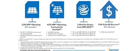As of September 30, 2021, Azure Power had 2.21 GW of operational capacity that went up 31% over previous year with cumulative operational, contracted and awarded MWs increasing to 6.95 GW which increased to 7.22 GW subsequent to the quarter end with new wins. This includes 4 GW of contracted and awarded capacity for which it has received letters of award (LOA).