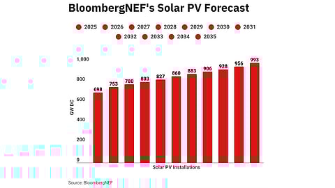 BloombergNEF has revised its 2025 annual solar PV addition forecast to now up to 698 GW DC