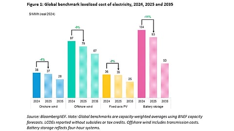 BNEF says the LCOE of clean energy technologies will decline by 2% to 11% in 2025