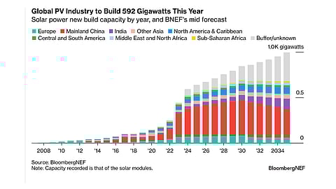 BNEF has increased its annual solar PV installation forecast for 2024 to 592 GW