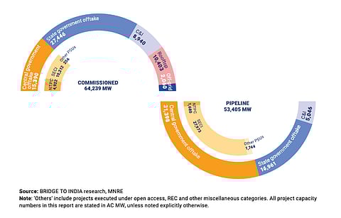 The aggregate installed solar power capacity of India reached 64.239 GW. There is another 53.405 GW in the pipeline, at various stages of development, the consultancy states in its India Solar Compass Q3 2022 report that can be purchased on its website.