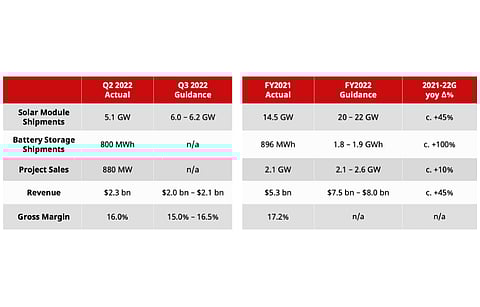 "We are off to a strong first half for 2022, and expect continued solar module volume growth through the remainder of the year as we ramp up capacity towards 2023 volume growth targets," said company Chairman and CEO Dr Shawn Qu. "The second quarter will likely be the largest quarter of the year for us due to the timing of project sales and battery storage shipments. However, we expect profitability to remain healthy through the second half of the year, driven by continued manufacturing processing cost reductions and lower logistics costs partially offset by higher polysilicon prices."
