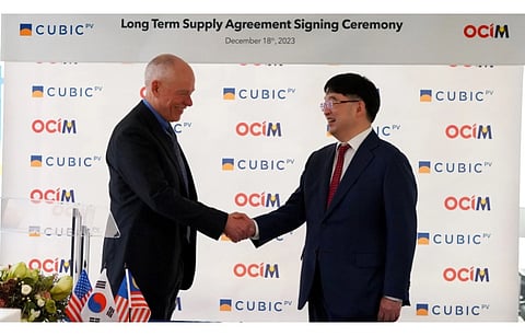 "OCIM's high-quality, US compliant silicon is in extremely high demand, and we are fortunate to lock-in our supply with a trusted partner," said CubicPV CEO Frank van Mierlo.
