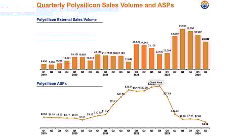 It sold 64,961 MT polysilicon in Q2 2024 for an average total production cost of $6.19/kg, which reduced from $6.37/kg. The ASP was down at $5.12/kg, compared to $7.66/kg in the previous quarter.