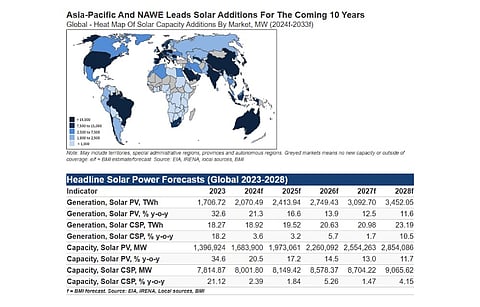 In 2033, global solar power generation will contribute about 15% of the total power mix, corresponding to 5,860 TWh, up from 2,070 TWh in 2024. By then, Asia Pacific will account for more than 60% of the global installed solar capacity, followed by 30% from North America and Europe combined, and the remaining from the rest of the world.