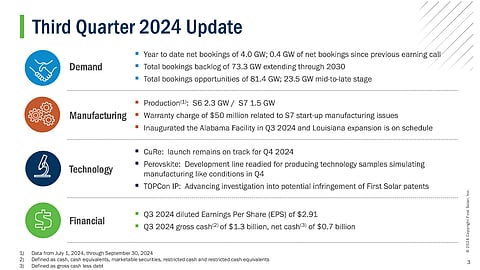 “As we approach the end of 2024, we remain pleased with the progress made across our business, navigating against a backdrop of industry volatility and political uncertainty, with a continued focus on balancing growth, profitability, and liquidity,” stated CEO Mark Widmar. “We expect that our disciplined, long-term approach will allow us to work through the outcomes of the upcoming US elections as well as the continued volatility across the solar manufacturing industry.”