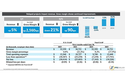 The $32.35 million GAAP revenue in the reporting quarter dropped 20.9% sequentially, but increased 5.3% YoY, yet was lower than the company's guidance of $42.5 million to $52.5 million (see FTC Solar Added $235 Million To Project Backlog).