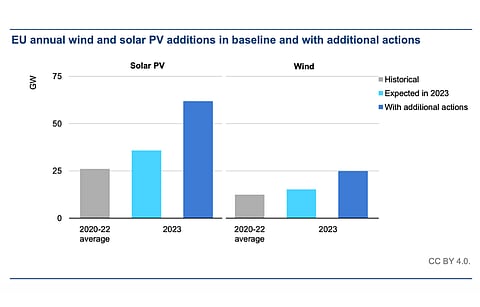As the European Union (EU) seems to manage and remain 'safe' in 2022 winter with just enough gas, this may change in the winter of 2023/24. However, it can avert the situation by scaling up and speeding up renewables, including deploying as much as 60 GW new solar PV in 2023, as per the International Energy Agency (IEA). This is even higher than SolarPower Europe's (SPE) 54 GW prediction for next year under its medium scenario (see European Union To Exit 2022 With Over 41 GW Solar Installed).