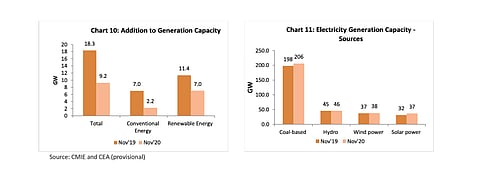 Renewable energy generation capacity addition in India between April 2020 and November 2020 added up to a total of 7 GW, clearly surpassing conventional capacity additions that was calculated by credit ratings agency CARE Ratings at 2.2 GW, basis provisional data of the Centre for Monitoring Indian Economy Pvt. Ltd. (CMIE) and Central Electricity Authority (CEA).