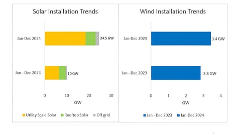 In comparison, JMK says India’s wind capacity increased by 21% YoY to around 3.4 GW in 2024 with Gujarat, Karnataka, and Tamil Nadu as the leading states.