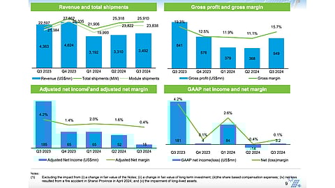 JinkoSolar’s Q3 2024 module shipment volume of 23.8 GW barely changed from the previous quarter