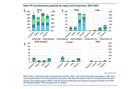 Another highlight of the report is the forecast for global manufacturing capacity for all solar PV production segments to 'more than double' to 1,000 GW by 2024, led of course by China and also by ongoing diversification efforts in the US, India and Europe.