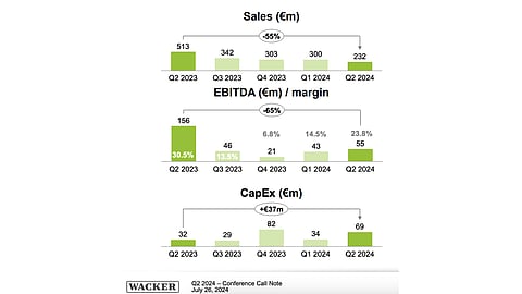 Wacker Chemie saw its Q2 2024 sales and EBITDA decline, majorly due to polysilicon business division