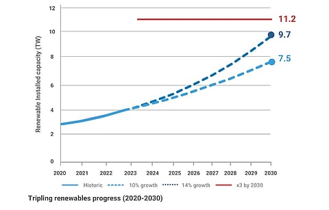 The International Renewable Energy Agency (IRENA) says the world risks missing the tripling of renewables target pledged at COP28 even if it continues to install new capacity at the unprecedented annual growth rate of 14% as in 2023.