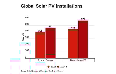 Earlier in March 2024, Bloomberg New Energy Finance pegged 2023 annual installations at 444 GW DC and forecast 2024 additions to grow by 29% to 574 GW DC (see BNEF Counts 444 GW DC New Solar PV Capacity Additions In 2023).