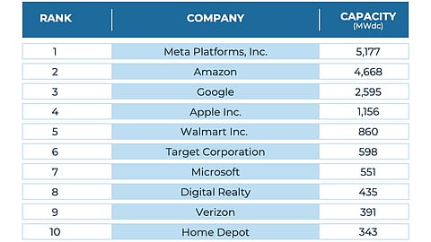 Meta Platforms is on top of the SEIA list of US corporate solar energy procurers with over 5 GW capacity