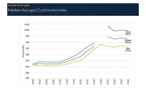 In the previous quarter, there was a 2% increase in PPA prices for both wind and solar in the continent with solar at €74.06/MWh and wind at €99.82/MWh (see Time To Make The Most Of Solar PPA Price Stability In Europe).