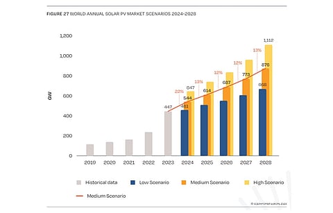 Launched at Intersolar Europe 2024, SPE's Global Market Outlook for Solar Power 2024-2028 report attributes this growth to the overcapacity of solar modules, thanks to the significant increase in global PV manufacturing capacities. It led to a severe drop in prices, as much as 50%, for solar components. The global energy crisis of 2022 continued to act as a stimulant for governments, individuals and businesses to keep investing in the technology last year.