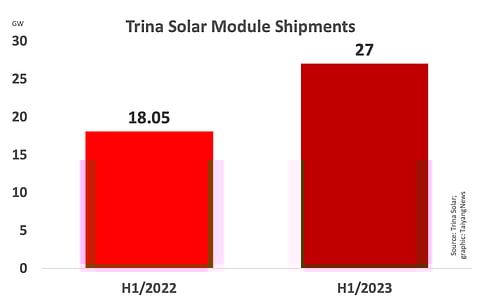In H1/2022, Trina shipped 18.05 GW solar modules according to InfoLink Consulting, next to JinkoSolar that emerged the top module supplier with 18.21 GW (see Top 10 Shipped 101.7 GW Solar Modules In H1/2022).
