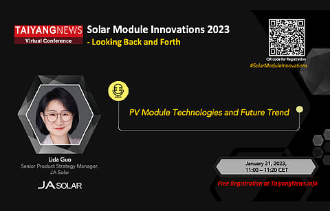 JA Solar to speak at TaiyangNews Virtual Conference on Jan 31: On Jan 31, Senior Product Strategy Manager JA Solar, Lida Guo, will be speaking at the TaiyangNews Solar Module Innovations Conference. The topic she will be addressing is: PV Module Technologies and Future Trend. At the Conference, there will be world leading vertically integrated PV panel manufacturers who will discuss innovations that are taking place in solar module technology. Besides JA Solar, there will be speakers from LONGi Solar, Trina Solar, Jinko Solar, Astronergy, DASolar; and for the first time, world's leading silicon and solar cell manufacturer Tongwei Solar will also be part of this Conference. The registrations are for free. Click here to register now.