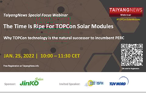 Jinko Solar's Antonio Ruta to speak at TaiyangNews TOPCon Webinar on Jan 25, while PV InfoLink reports stability in module prices, Taizhou HIUV and Taizhou Haiyou sign RMB 200 million deal, Trina Solar establishes RMB 200 million, and Ningxia Zhonghuan rolls out G12 monocrystal.