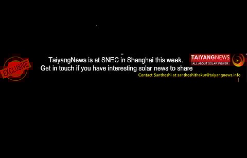 TaiyangNews team at SNEC: The TaiyangNews team will be at the 16th International Photovoltaic Power Generation and Smart Energy Conference & Exhibition (SNEC) taking place at the Shanghai New International Expo Center this week. In case there are interesting solar news to be covered, or you simply want to reach out to the team, write to Santhoshi Thakur (santhoshithakur@taiyangnews.info). Also watch out for TaiyangNews exclusive interviews of esteemed industry leaders conducted in collaboration with SNEC.