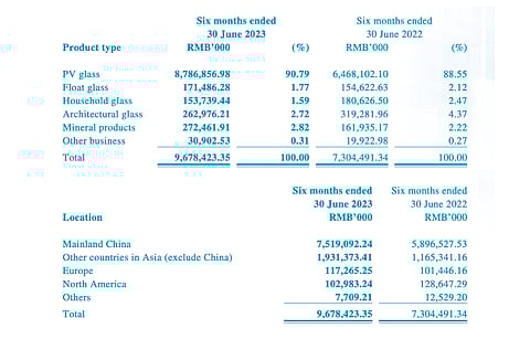 It added, "On the other hand, in the first half of 2023, given the weak demand from the Chinese market, the average selling price of float glass decreased but the average cost of raw materials and energy soared, which caused a slump in the gross margin of float glass, and also impacted the overall gross profit."