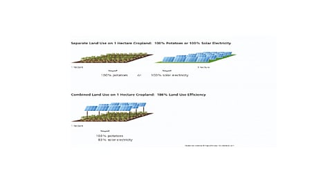While some fear that solar ground mounted power plants at some point might run into space issues in certain regions, there are ways for optimisation. For example, it is possible to use solar systems for multiple purposes, such as for power generation and agricultural support. Fraunhofer ISE studied power generation and crop yield from a 194 kW of solar PV array put up on a third of a hectare of arable land mounted on a 5-meter high structure near Lake Constance in Germany. While in 2017, the land use efficiency was found to be 160% per hectare, in 2018 it has been found to have reached 186% per hectare.