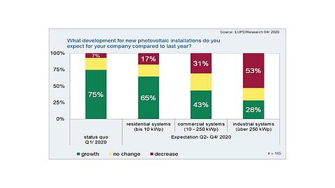 Installers surveyed for the report see residential solar installations of up to 10 kW capacity growing during rest of the year, but 31% of the installers expect commercial systems and 53% see industrial deployments to go down this year. "This will have a particularly drastic impact on the solar market in Germany, as commercial plants with 1.1 GW and industrial plants with 1.7 GW comprised more than 70 percent of all new installations in 2019," claims the report that's supported by BayWa r.e., E3/DC, Sharp and Solarwatt.