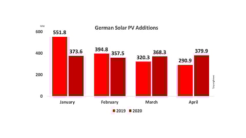 In Q1/2020, Germany added over 1 GW of new PV capacity and with the April additions, between January 2020 and April 2020 the country reportedly installed 1,479.47 MW.