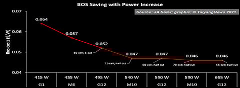 To understand how it works, it is important to analyze the reason behind the need to increase module power. The main motivation here is not just a sign of improvement ('larger means better') but is strongly backed by economics – enabling reduction of balance of system (BOS) costs