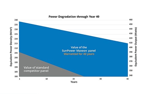 "The result is an unprecedented 88.3% warranted power level at the end of 40 years, meaning Maxeon IBC panels deliver up to 9.5% more power after 40 years than standard solar panels deliver after 25 years," added the company.