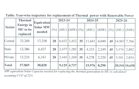 A document released by the ministry lists the TPP generating stations that need to ensure this transition by the stipulated deadline, while adding a disclaimer that the list is indicative and not exhaustive and that a thermal power station can substitute larger amounts of thermal power than renewable energy, over the above the targeted 58,000 MU.
