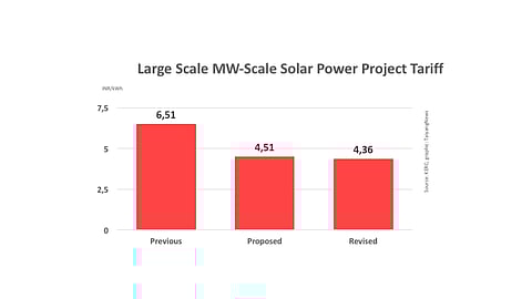 For the previous year, the benchmark tariff in this category was 6.51 INR ($0.096) per kWh. It has now dropped down by 2.15 INR ($0.033). KERC had earlier proposed a tariff of 4.51 INR ($0.066) per kWh. Declining module prices were taken into consideration before determining the new tariff, according to clean energy communications and consultancy firm Mercom Capital Group. Average module cost per watt was taken as 23.49 INR ($0.35).