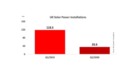 As per the department's data, between January 2020 and March 2020, the UK added 35.6 MW of new solar, which is a steep decline from 118.5 MW the country reported during Q1/2019.